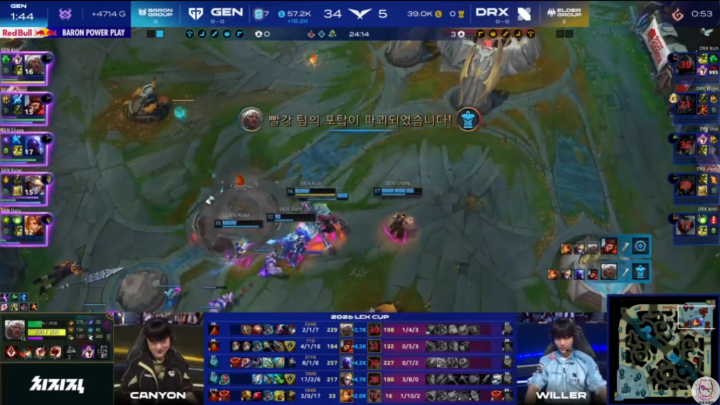 LCK2026年新赛季第一场纯粹的虐菜局,GenG首秀对战DRX。作为选手阵容没有任何变化的LCK冠军战队,GenG显然在整体实力上要高出DRX一大截。虽然DRX转会期也进行了一些人员调整,但从今天的首秀表现来看,给人的感觉没有任何团队配合,各自为战磨合很差,教练组语音介入作用也几乎为0。