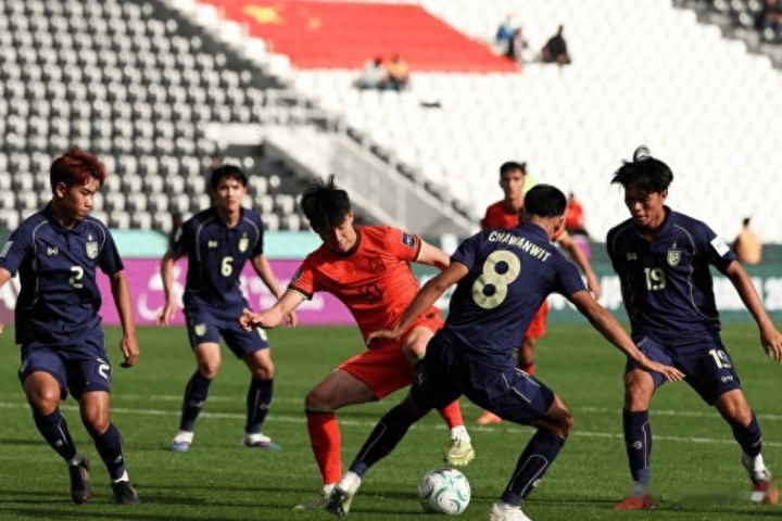 上半场尾声阶段,国足门前险象环生,第39分钟,泰国右侧开出角球,拜合拉木前点解围失误将球顶向球门,好在李昊奋力扑出;第43分钟,泰国左路进攻突然一脚质量很高的吊射,李昊将球托出底线;第45+3分钟,泰国又打出攻势,钦恩近距离甩头攻门,李昊又是稳稳将球没收;半场双方0-0平;